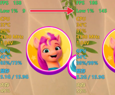 这游戏优化有问题,隔个两秒左右就会卡一下,导致 Low 帧特别低,操作起来非常痛苦。解决方法非常简单,就是用 dxvk 让游戏使用 Vulkan 运行。效果如下: